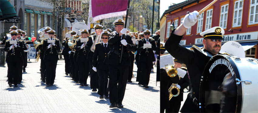 Etter å ha blåst en del rusk ut av instrumentene i Heradsbygda gikk det riktig bra i byen, også med hele 40 musikanter da!
