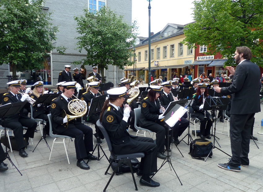 Det var tydelig at publikum trivdes på Søndre torg lørdag under korpsets tradisjonelle marsjkonsert før nasjonaldagen. Folk strømmet til umiddelbart etter at vi hadde marsjert inn og flokket seg rundt oss.
