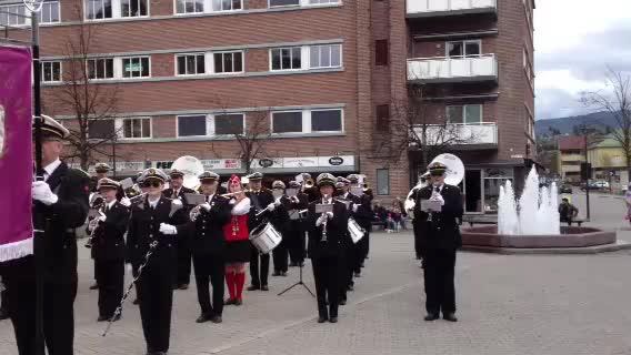 Catharina gjorde et opptak med telefonen sin fra marsjkonserten på torget sist lørdag. Klikk på linken Bør avspilles over gode høyttalere